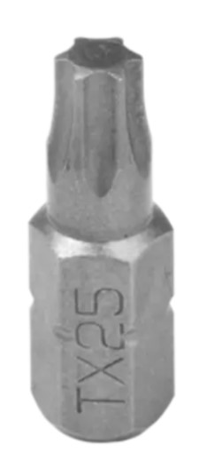 Bit Torx T25 to profesjonalna końcówka wkrętakowa wykonana z wysokiej jakości hartowanej stali, zapewniająca trwałość i odporność na zużycie. Dzięki precyzyjnemu kształtowi doskonale dopasowuje się do gniazd wkrętów typu Torx, minimalizując ryzyko ich uszkodzenia i ześlizgiwania się narzędzia. Idealnie sprawdzi się w montażu konstrukcji drewnianych, stolarki budowlanej, prac dekarskich i przy skręcaniu mebli. Niezastąpiony element wyposażenia każdej wkrętarki i zestawu narzędziowego.