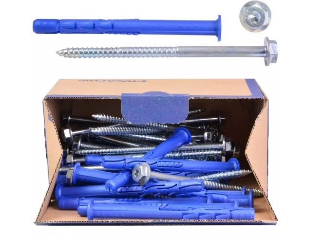 Do mocowania ram, ościeżnic, konstrukcji metalowych i drewnianych, profili, konsoli oraz elementów fasadowych w takich podłożach jak: beton, cegła pełna, pustak, kamień.
