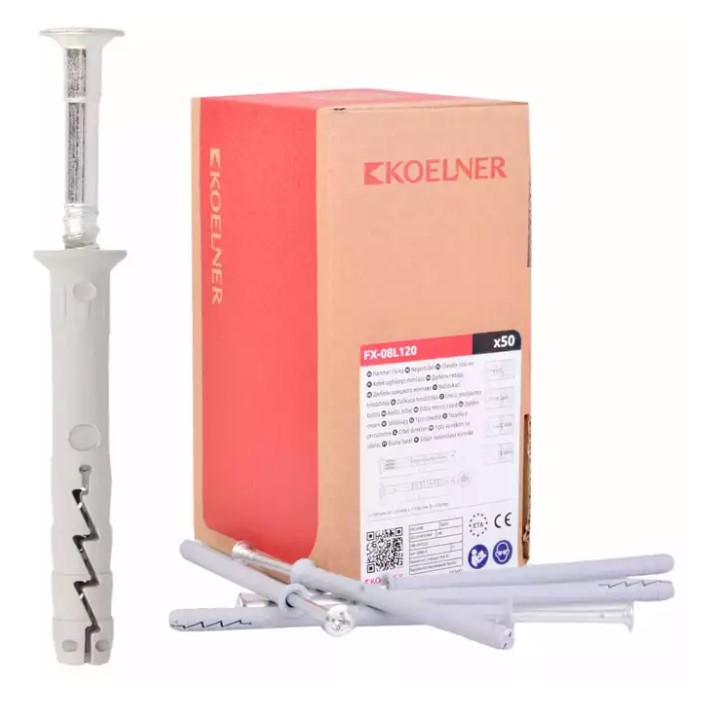 Kołek szybkiego montażu FX 8×120 mm to uniwersalne i praktyczne rozwiązanie do szybkiego i trwałego mocowania elementów budowlanych i wykończeniowych w twardych podłożach, takich jak beton, cegła pełna czy kamień. Wersja bez kołnierza umożliwia całkowite schowanie kołka w materiale, co jest szczególnie przydatne przy estetycznym wykończeniu powierzchni. Zastosowanie tworzywa wysokiej jakości oraz hartowanego wkręta z łbem stożkowym zapewnia dużą siłę kotwienia i łatwy montaż poprzez element mocowany.