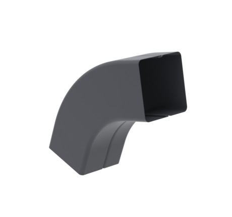 Kolano rury spustowej kwadratowej KROP Stal 80×80/60° w kolorze czarnym (RAL 9005) to element systemu rynnowego służący do zmiany kierunku przepływu wody w rurze spustowej. Stosowane w miejscach, gdzie konieczne jest ominięcie elementów elewacji lub połączenie rury spustowej z lejem rynnowym.