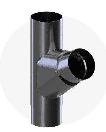Krop stal trójnik rury 90/67.5° RAL 9005 (czarny) to element systemu rynnowego, służący do połączenia dwóch rur spustowych w jeden wspólny odpływ. Trójnik umożliwia efektywne odprowadzanie wody z dwóch połaci dachu do jednej rury spustowej. Wykonany ze stali powlekanej i zabezpieczony powłoką w kolorze czarnym (RAL 9005), charakteryzuje się wysoką odpornością na korozję, UV i uszkodzenia mechaniczne. Kąt nachylenia przyłącza bocznego to 67,5°.