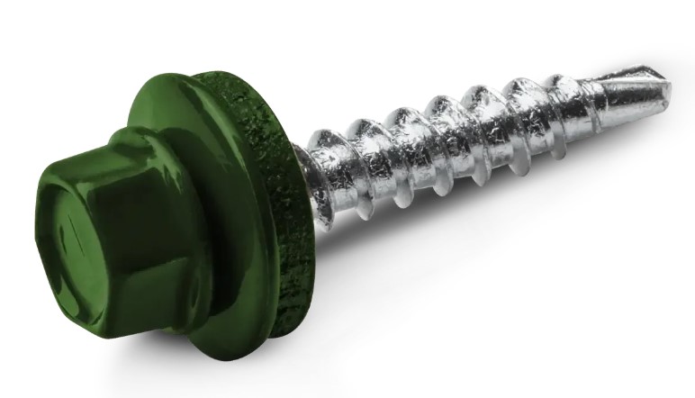 Wkręt farmerski 4.8×35 mm w kolorze RAL 6020 (zielony) to wytrzymały element złączny do szybkiego i solidnego mocowania blach stalowych do konstrukcji drewnianych. Dzięki samowiercącej końcówce montaż jest prosty i nie wymaga wcześniejszego nawiercania. Wkręt posiada trwałą powłokę antykorozyjną oraz uszczelkę z EPDM, która zapewnia szczelność połączenia i ochronę przed warunkami atmosferycznymi. Kolor RAL 6020 idealnie komponuje się z blachami dachowymi i elewacyjnymi w ciemnozielonych i leśnych odcieniach.