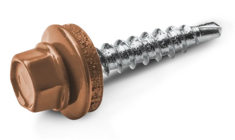 Wkręt farmerski 4.8×35 mm w kolorze RAL 8004 (ceglasty / miedziany brąz) to niezawodny element montażowy do szybkiego i trwałego mocowania blachy dachowej lub elewacyjnej do konstrukcji drewnianych. Wyposażony w samowiercącą końcówkę, nie wymaga wcześniejszego wiercenia otworów, co znacznie skraca czas montażu. Trwała powłoka antykorozyjna w połączeniu z elastyczną uszczelką EPDM chroni połączenie przed wpływem czynników atmosferycznych. Kolor RAL 8004 doskonale komponuje się z dachami i elewacjami w odcieniach ceglastych, miedzianych i naturalnego brązu.